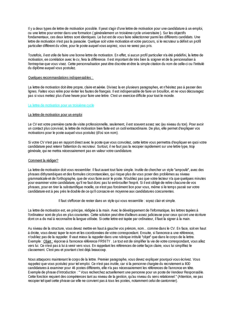 Il Y A Deux Types De Lettre De Motivation Possible