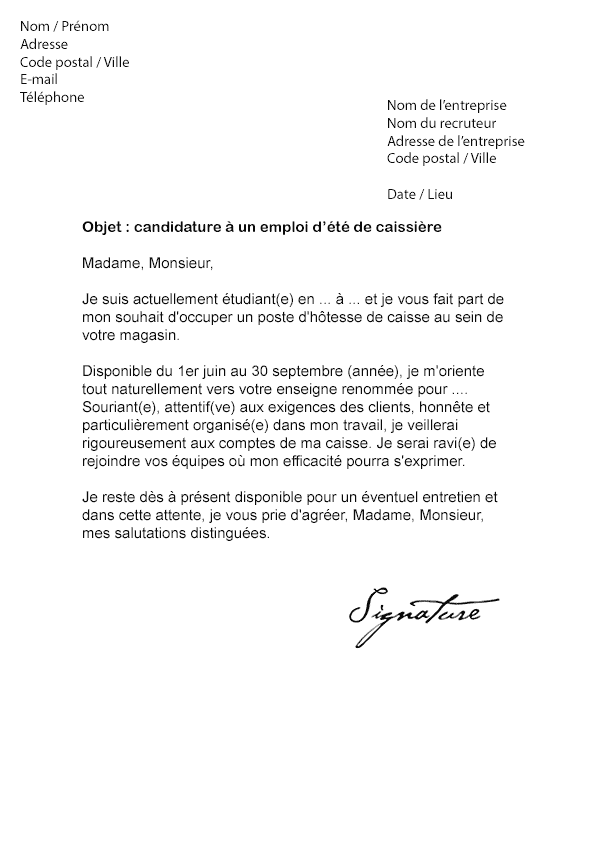 Lettre De Motivation Job Dété Caissière Modèle De Lettre