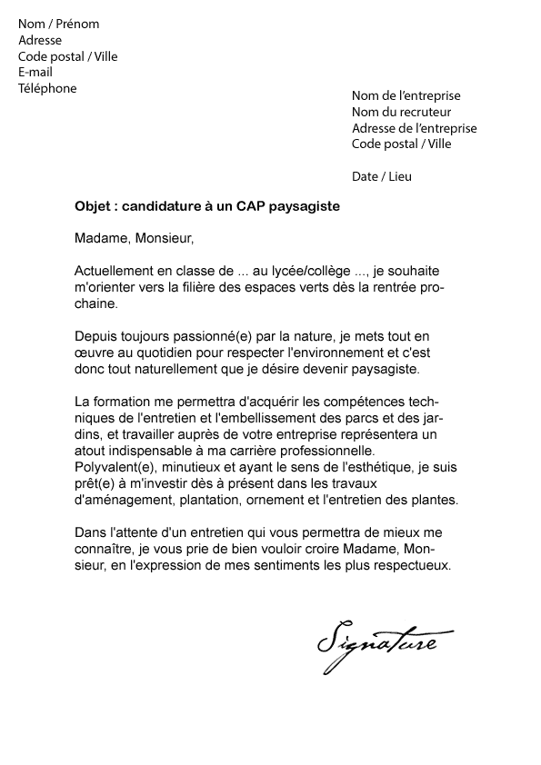 Lettre De Motivation Cap Paysagiste Modèle De Lettre